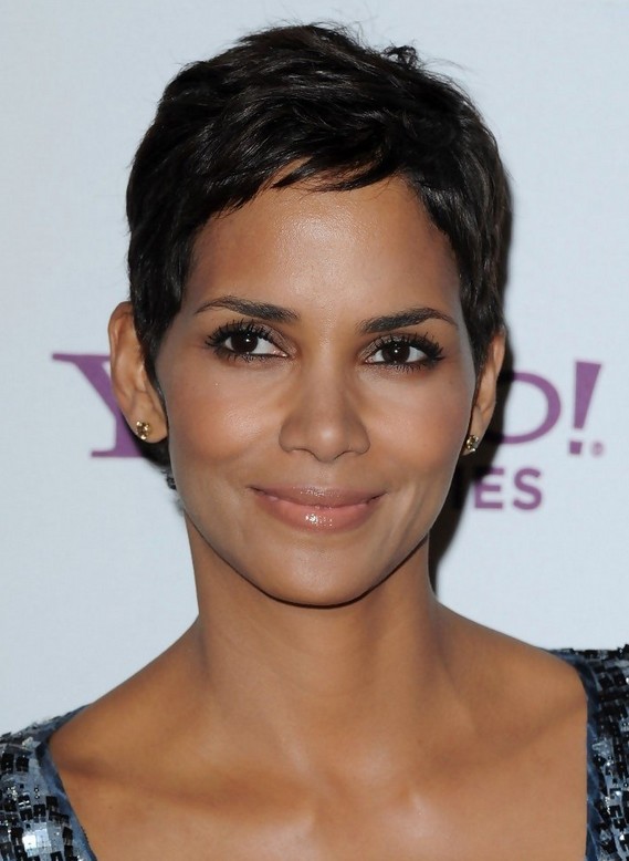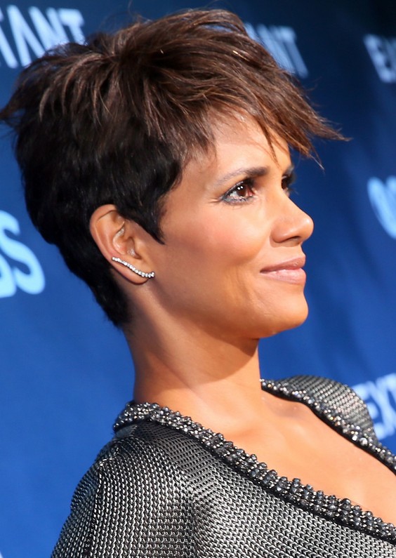 This version of Halle Berry’s signature haircut, the pixie-is much shorter in the crown than the previous photo. It is actually closer to the popular boy cut.