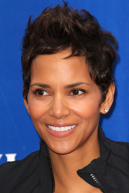 Halle Berry is cute with this short, extremely curly “do”.