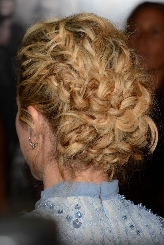 Braided up dos are very trendy right now, and this one made up of many braids would be drop dead gorgeous on someone with very thick hair. The thicker the hair, the more beautiful the braid-add highlights into the mix, and you really have a show- stopper!