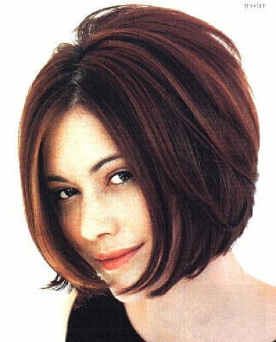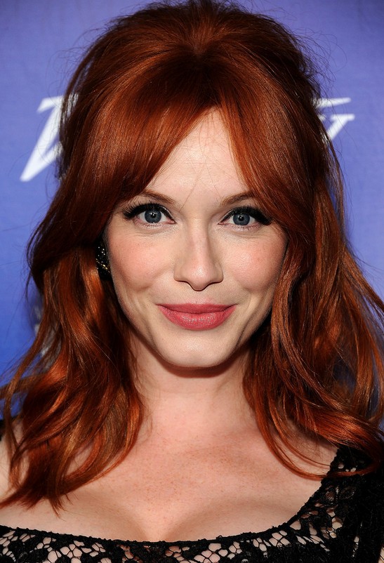 Christina Hendricks’ thick, red hair is just gorgeous wearing this half up “do” with fluffy bangs! This style works best with a layered cut and a razor cut would give the tendrils of hair that are left around the face a light, airy appearance.
