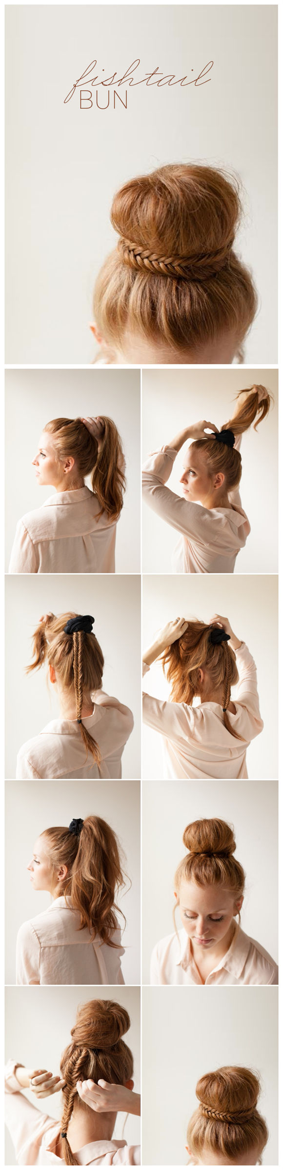 DIY hairstyles: Fishtail Bun Updo for wedding, prom