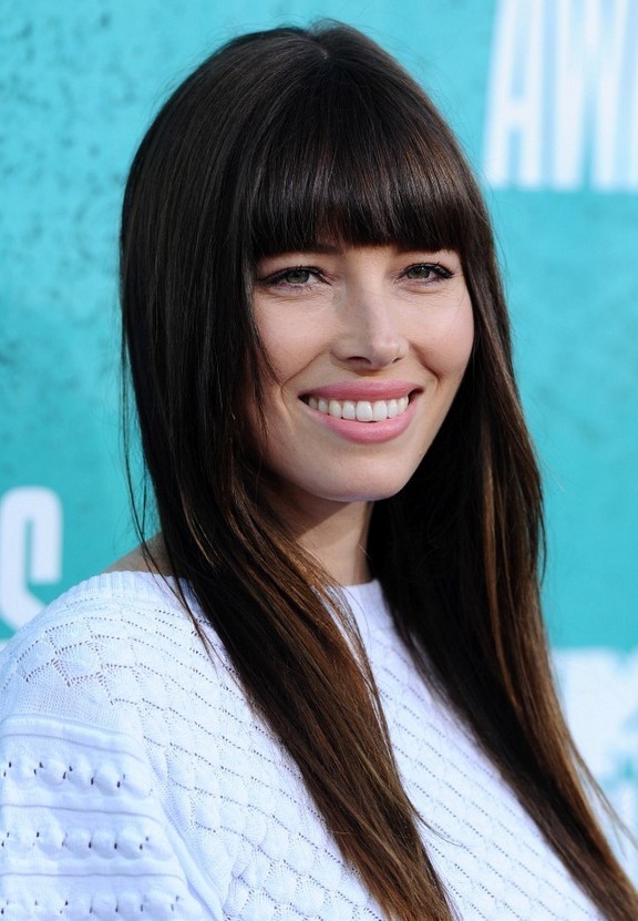 If your hair is medium length to long, don’t forget that straight look of the 60s with the blunt cut straight bang-such as the one seen here on Jessica Biel. If you have curl or wave in your hair, you can use a flat iron to get this look or if you have short hair and want to rock this look-consider a fall, or a quick weave!