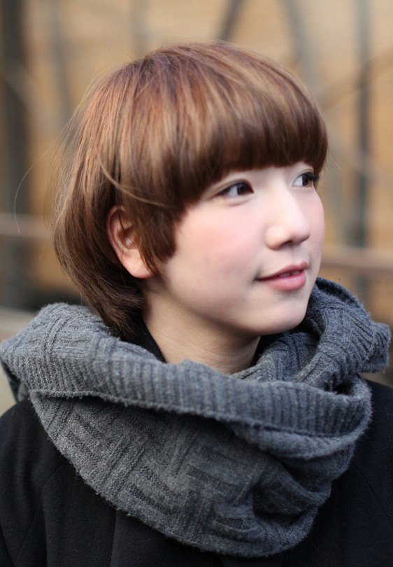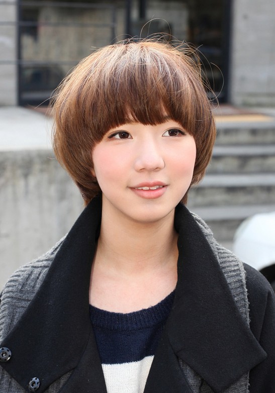Latest popular short straight haircut for women: the Asian mushroom bob hairstyle