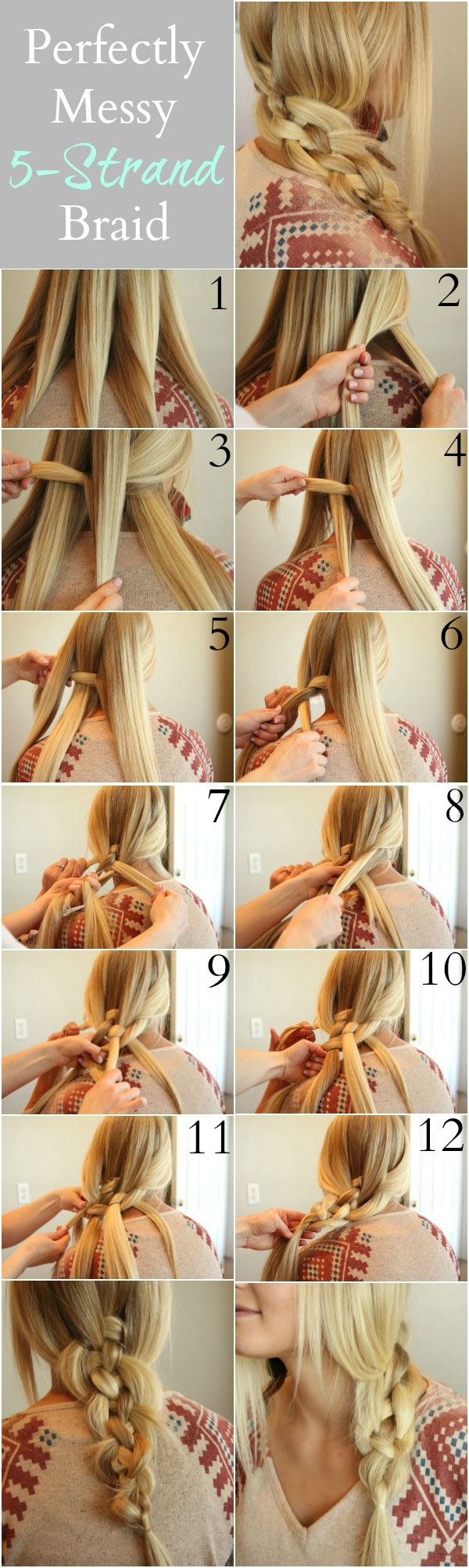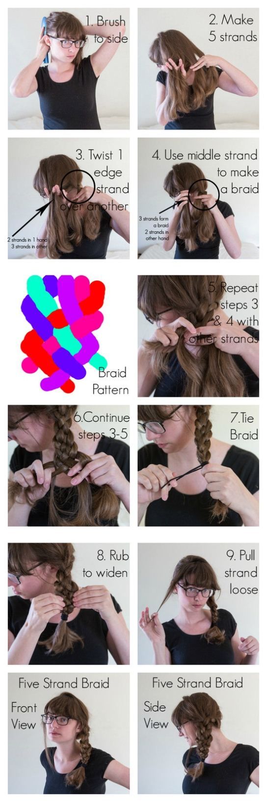 In this tutorial, you will learn how to do a sexy messy five strand braid step by step. And here is another Five Strand Braid step by step tutorial.
