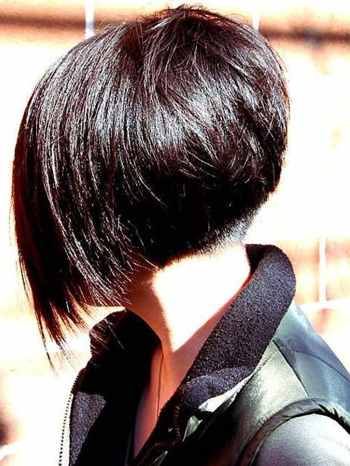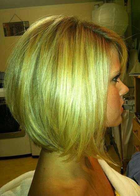 This lady has a great angled bob with a stacked back as seen here, with the front distinctly longer than the back.