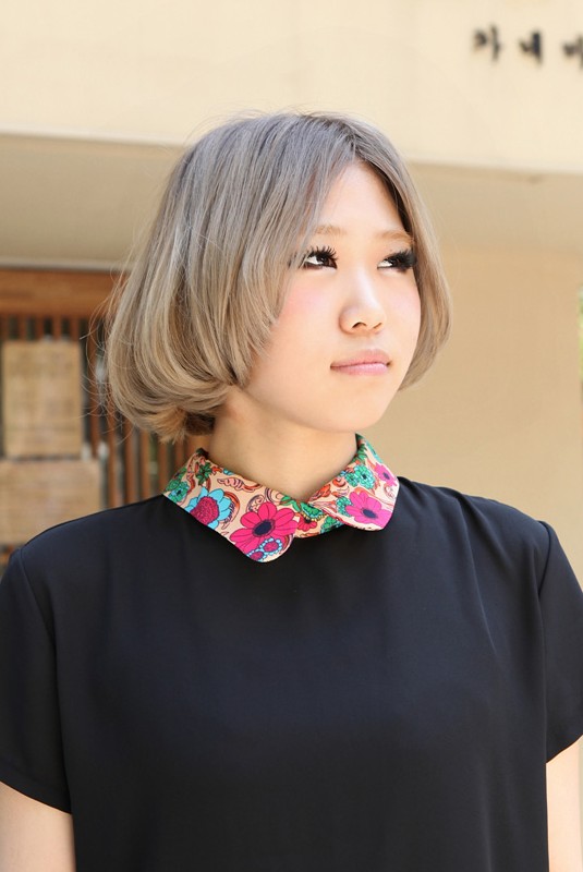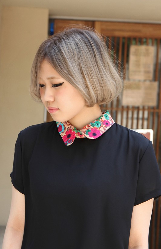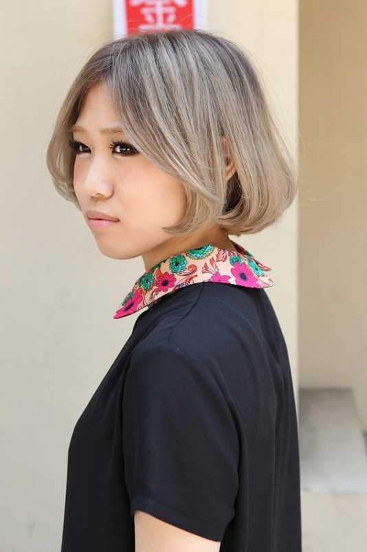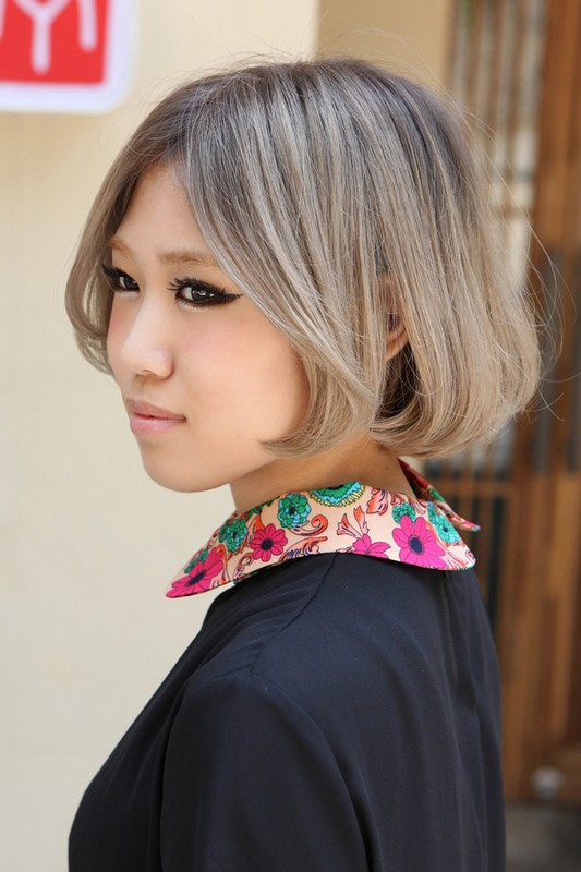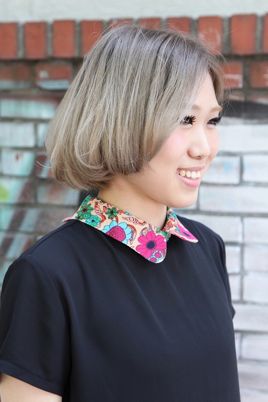 Gallery of Chic center parted gray straight Japanese bob hairstyle