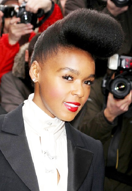 American R&B/soul musician Janelle Monae rocked her signature pompadour at the Chanel Haute Couture fashion show. Silky red lips finished off her look.