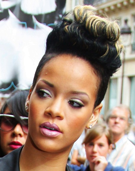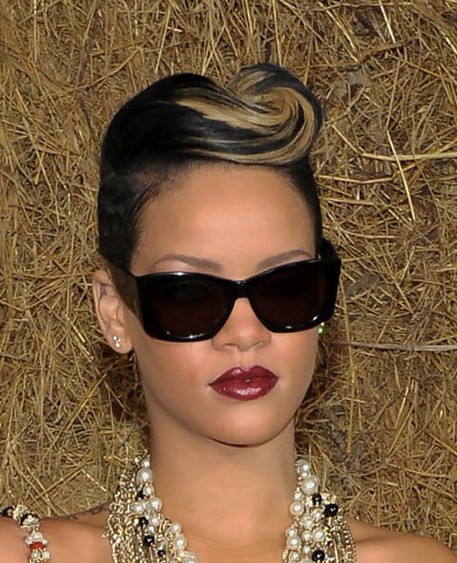 Fashion star Rihanna sported Pompadour Haircut. There’s the pouf that Snooki of ‘Jersey Shore’ has made infamous, of course, but there’s also the shaved pompadour mohawk Rihanna rocked last fall.