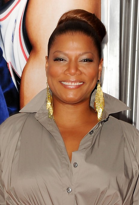 Queen Latifah’s Hairstyles – African American Bun Updo for Round Faces