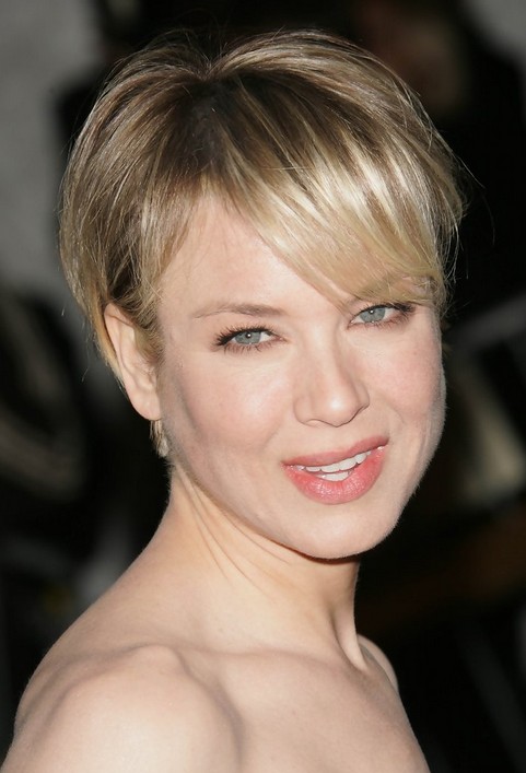 Short boy cut with bangs for round faces – Renee Zellweger’s hairstyles