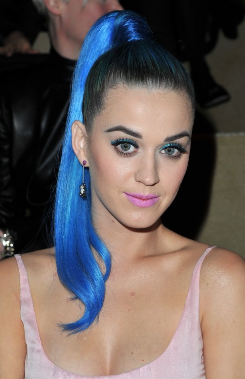 Multi-Colored Hair in vibrant hues is a hot look in this season, as seen here in bright blue and purple worn by Katy Perry.