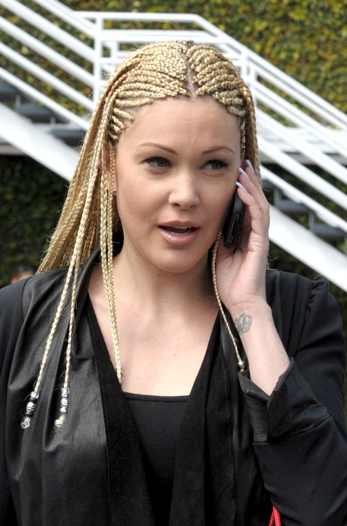First photo above left is a French twist with ends wrapped into a bun on top of head. To do this, gather your Cornrows over to one side, and begin twisting and tucking inward pinning as you go. You will begin to see a “roll” start to form, continue on up the head until you run out of room to twist and style excess into a bun and pin on top of head. The style in the last photo is done much the same way, only the ends are tucked as opposed to having the bun.