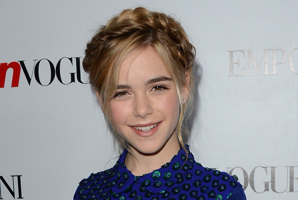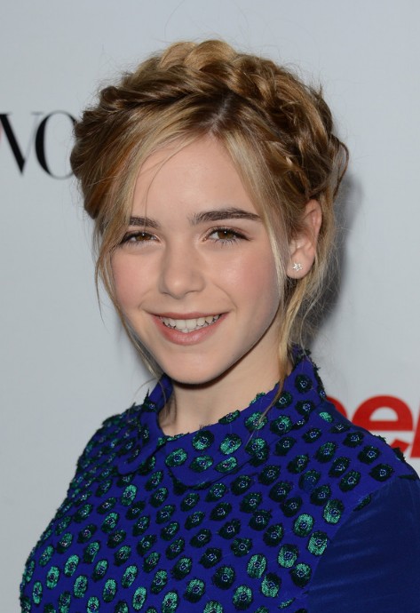 Beautiful Braided Updo from Kiernan Shipka: The Tousled Twist. The braided updo is one of my favorite hair style, and here is a new style from Kiernan, she finished off her sweet look with these Heidi braids at the Young Hollywood Party, this is a fabulous hair style for little girls!