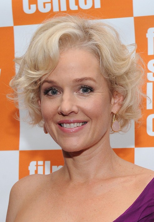 This romantic, curly style is easy to do-begin with making a shallow part on the left side of hair, about two-inches. Use a medium barrel curling iron or medium hot rollers, sectioning hair into one-inch squares; begin making spiral curls all over the head. For bangs, hold hair section back parallel with scalp and roll down toward forehead. When you have finished putting in the curls, spray all lightly with hairspray. When spray is dry, carefully comb all curls out individually taking care to retain the original shape of the curl and apply texturizing product to define curls. Apply root volumizer to bangs, holding them up while product dries, comb into place creating the desired wave and lift for front of style. Spray all with medium to extra hold hairspray.