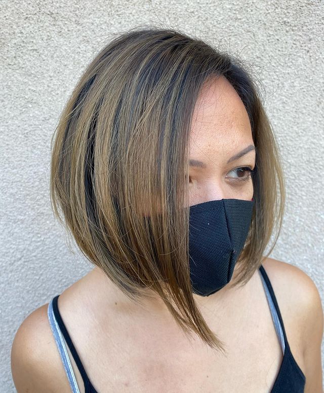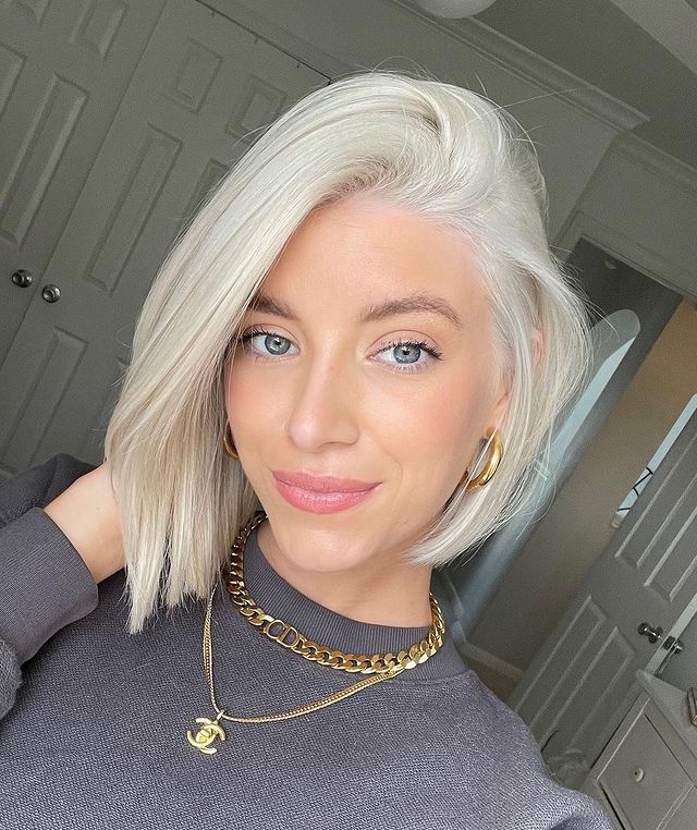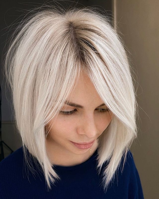 To accentuate your attractive bone structure and minimize a narrow chin, pick a smooth round bob with an asymmetric side parting and a trendy long fringe. The side-swept fringe adds the illusion of more width around the chin and minimizes a wide forehead.