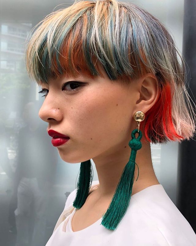 Another good way to shorten a long face is to cover up your forehead with a full, blunt-cut fringe or an extra-long asymmetric fringe that will make your face look shorter.