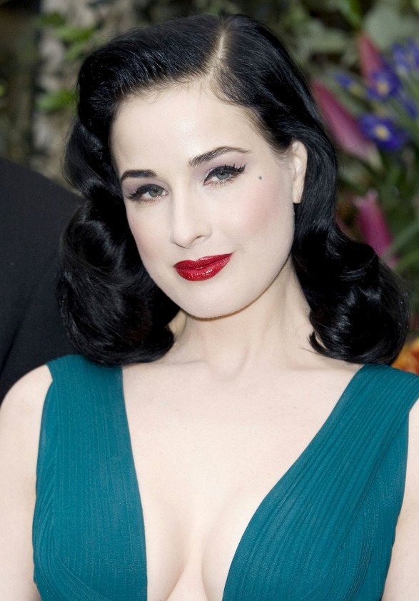 Dita Von Teese looks as if she just stepped off of the Silver screen in Old Hollywood! She captures the retro vibe better than almost anyone else these days, and the waves and curls in her hair that look so picture perfect, are made so by layers. Shorter layers in the bang area allow for the face framing curls and directional waves and some longer layering in the crown allows for height.