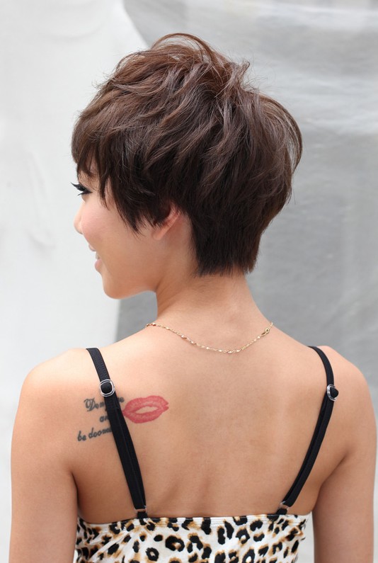 Lovely Short Asian Pixie Cut: Graduated layers