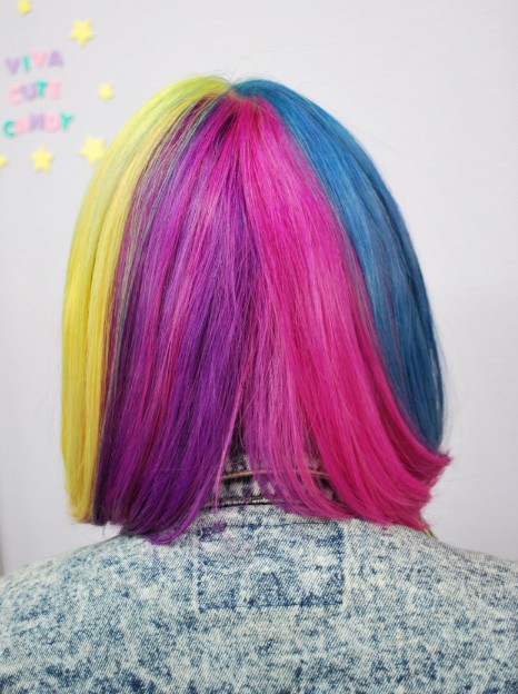 Consider a bob if you’re looking for a trendy, flattering, and easy to maintain haircut. With many examples of celebrities opting for bob hairstyles from earlobe to demi to shoulder-length. Bob hairstyles are easy to maintain option for thin or thick hair. Today I’d like to show you a trendy stylish short rainbow bob hair style, some of you may not like this hair, but the one who love bright hair colors may love this one.
