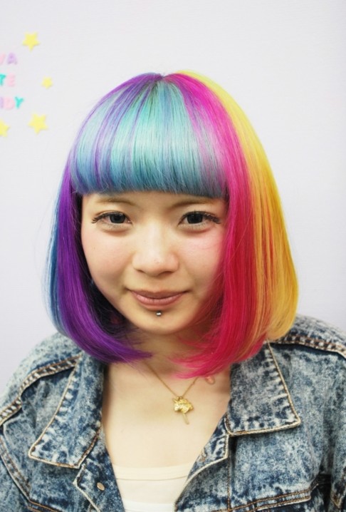 Looking for a new short classic bob hair style with bright hair colors? O.K. Here is a cool stylish trendy short bob hair style from a Japanese girl who sports amazing bright hair colors. Hope you love it.