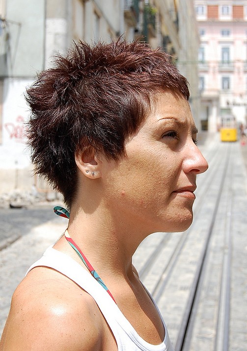 This fantastic naughty pixie style has a perfectly balanced blend of curves, circles and spiky, trendy style! This is a good short haircut for Sports & Activities.