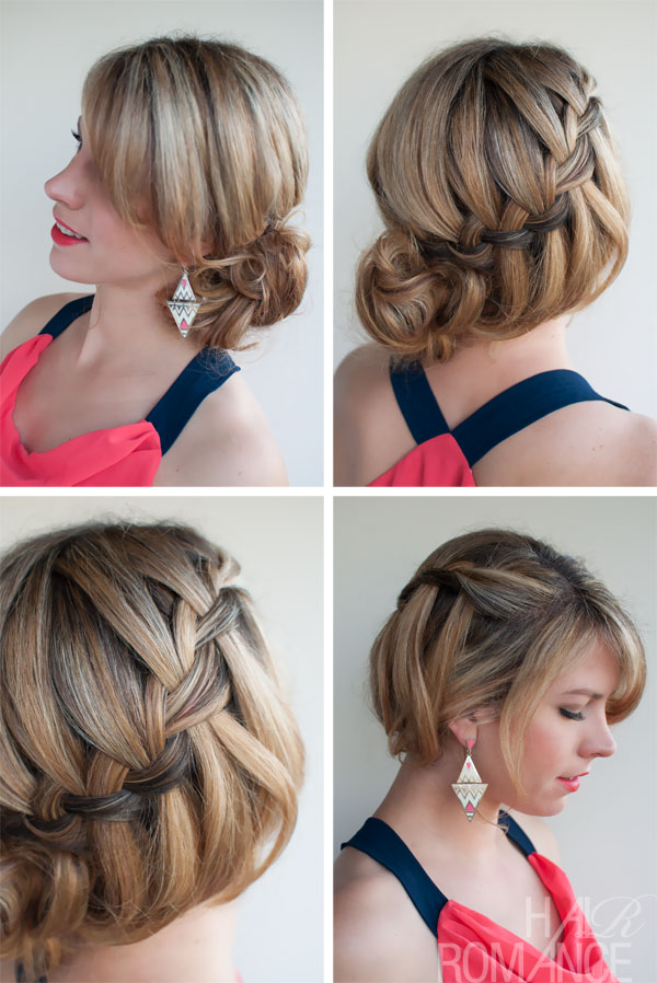 Latest romantic hairstyles for women: the waterfall braided bun updo.