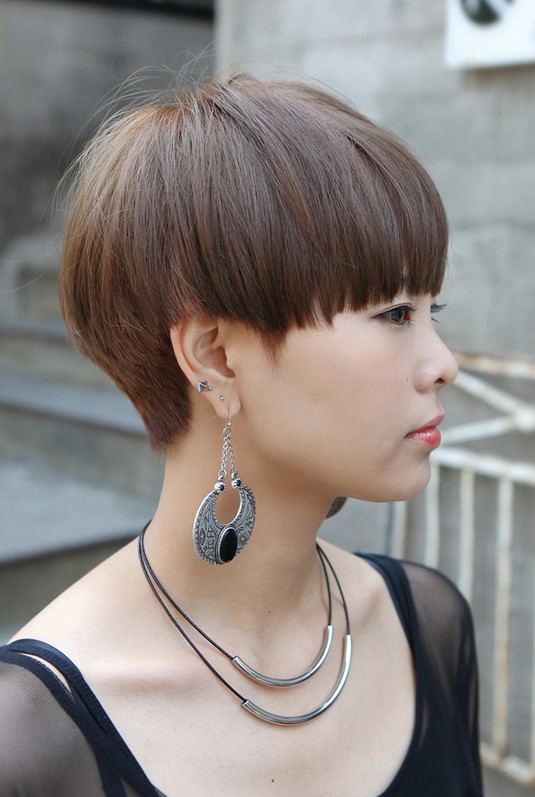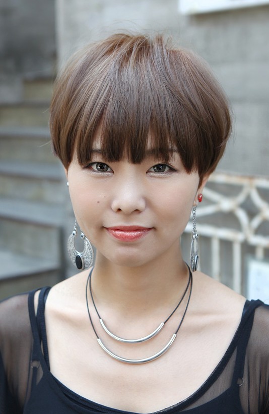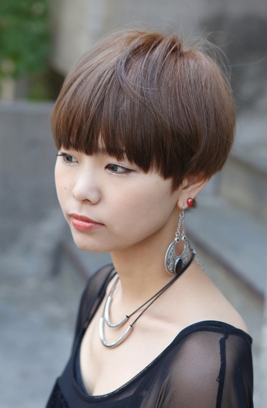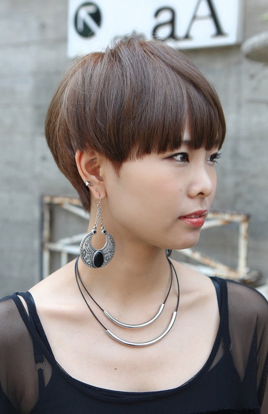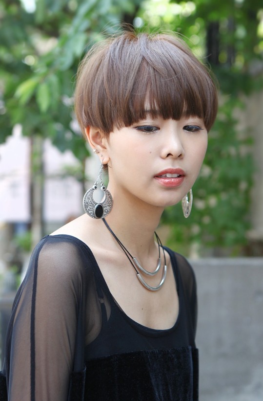 Usually the bowl cut is popular on men, but in recent years, also you can see a lot ladies wear bowl cut! Wear with dramatic pendant earrings for fashion-leading style!